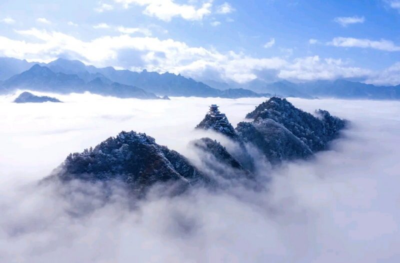 隨著今年首場大雪降落,南五臺再現(xiàn)如夢似幻的云海奇觀。雪霽天晴,山頂?shù)姆e雪在陽光下,閃爍著細(xì)碎的光芒,宛如鉆石般耀眼。當(dāng)冰雪世界遇上云海奇觀。如同展開了一幅流動的畫卷。云海在山谷間翻騰涌動,讓山峰若隱若現(xiàn),巍巍壯麗。