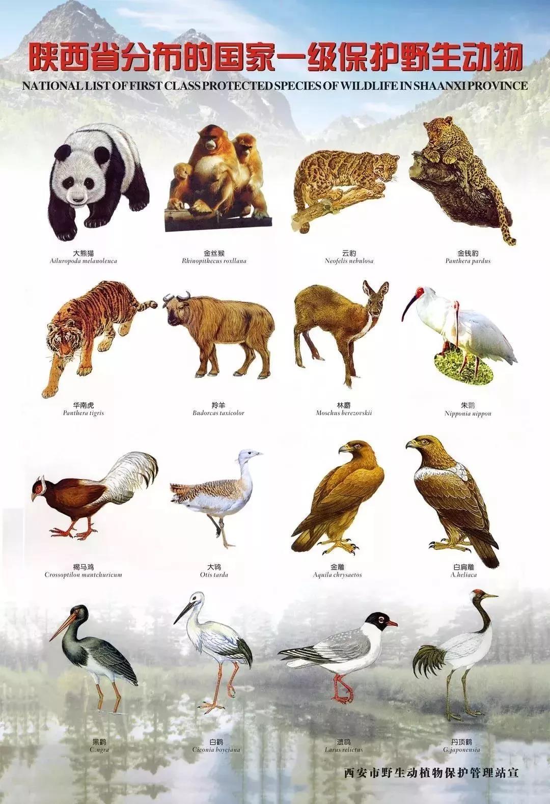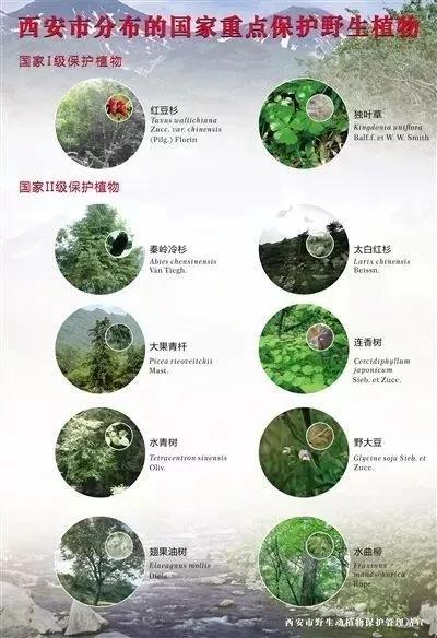 秦嶺素有“中國(guó)國(guó)家公園”及“綠色基因庫(kù)”的美譽(yù),是中華文明的精神標(biāo)識(shí)和中華地理的自然標(biāo)識(shí),是我國(guó)乃至世界都極為罕見的生物資源寶庫(kù),蘊(yùn)藏著大量珍稀野生動(dòng)植物資源。其中,國(guó)家一級(jí)保護(hù)野生動(dòng)物有:大熊貓、金絲猴、羚牛、朱鹮、豹、林麝等10余種;二級(jí)保護(hù)野生動(dòng)物有:豺、黑熊、石貂等65種。國(guó)家一級(jí)保護(hù)植物有:紅豆杉、獨(dú)葉草等4種;二級(jí)保護(hù)植物有:連香樹、太白紅杉、大果青扦、水曲柳、香果樹、秦嶺冷杉等13種。